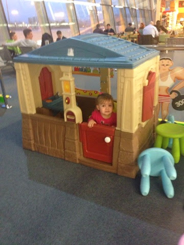 Outside of the airport. It was pretty cool. It was open yet covered like a dome (think Football arena).